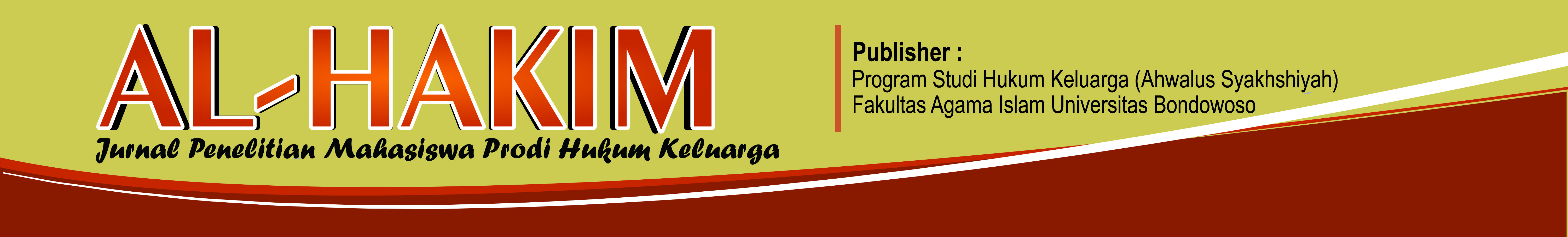 Al-Hakim: Family law student's journal of family law study program ISSN  (Print), ISSN : 2963-1092  (Online), is a journal created by students of Bondowoso University's family law study program. This journal is the result of student research accompanied by a supervisor. This journal includes studies of Islamic law both empirical and normative from various research models